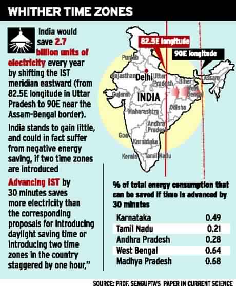 - None of the other proposals such as the introduction of daylight saving time (DST) in India has met with any approval and it is felt that having two time zones would be unsuitable.